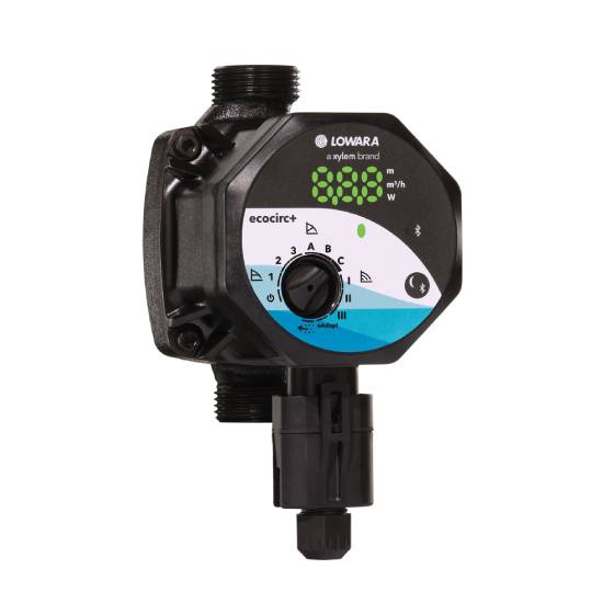 - Η σειρά Ecocirc+ διαθέτει επιπρόσθετα ψηφιακή οθόνη στην οποία εμφανίζονται η κατανάλωση (Watt), το μανομετρικό (m) και η παροχή (m3/h).
