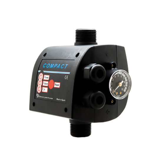 Συσκευή για τον αυτόματο έλεγχο και προστασία των ηλεκτρικών αντλιών με ηλεκτρονικό αισθητήρα ροής και πίεσης, ενσωματωμένο σε ηλεκτρονικό κύκλωμα που οδηγεί την αντλία και διατηρεί την πίεση και τη ροή ανάλογα. Επιπλέον, διαθέτει σύστημα ασφαλείας για την αποφυγή της ξηρής λειτουργίας. Το COMPACT 22 αντικαθιστά τα παραδοσιακά συστήματα με δοχείο διαστολής & πιεσοστάτη, με το πλεονέκτημα των μικρότερων διαστάσεων και την αποφυγή της περιοδικής συντήρησης. Αυτές οι μονάδες ξεκινούν αυτόματα και σταματούν μετά από προγραμματισμένο χρόνο 10 δευτερολέπτων μετά το κλείσιμο της βρύσης.