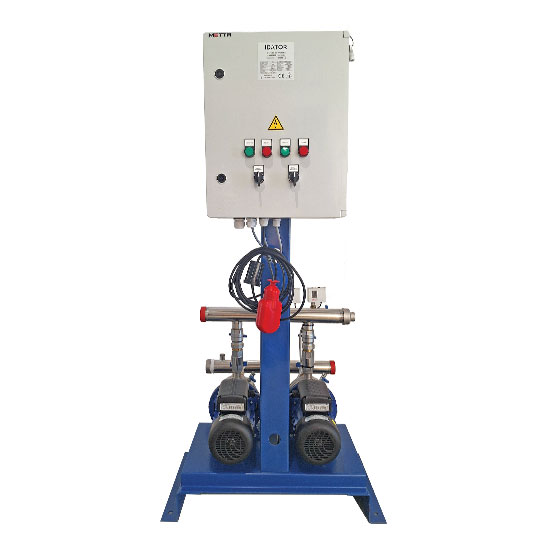 If for some reason (e.g., increased demand, reduced pump efficiency, pump failure), the pressure continues to drop and falls below the parallel operation pressure switch’s setting, the auxiliary pump will start simultaneously. When the pressure exceeds the stopping pressure of the pressure gauge, the pumps will stop operating.