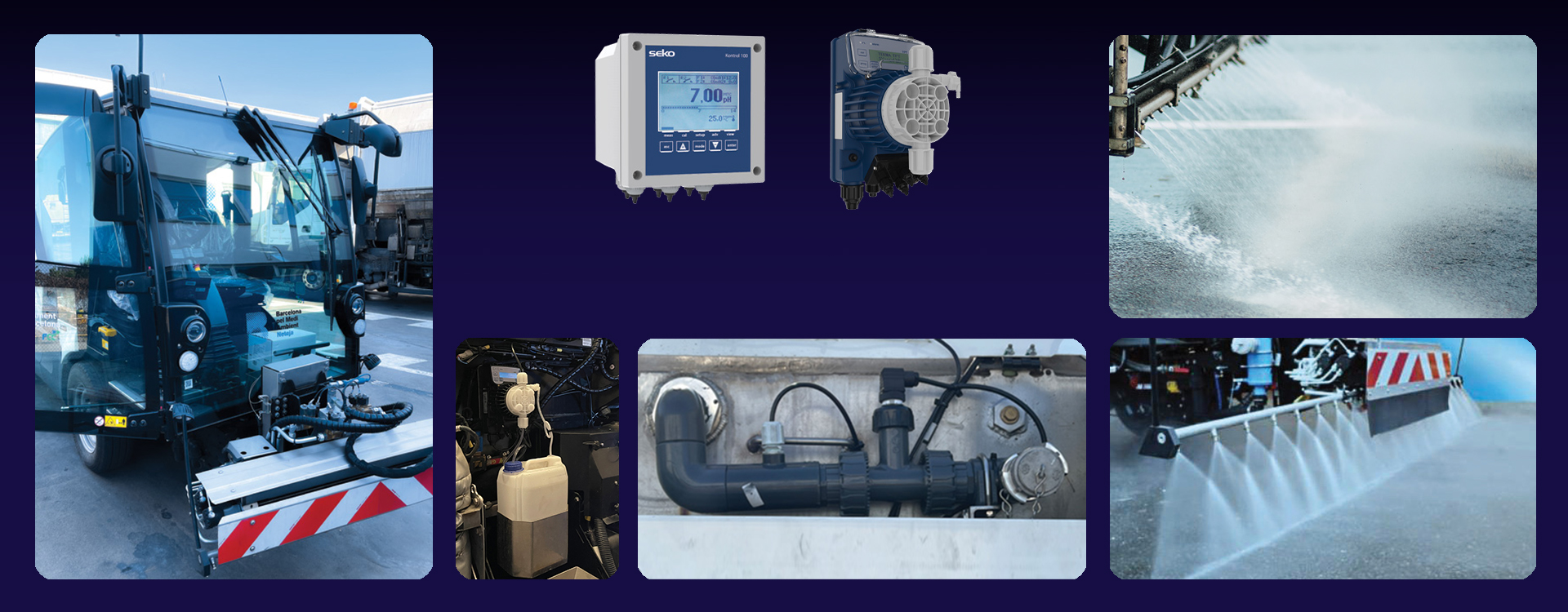 Μετά από ανάλυση των απαιτήσεων του πελάτη, η Seko επέλεξε έναν ελεγκτή μίας παραμέτρου Kontrol 100 και μια δοσομετρική ηλεκτρομαγνητική αντλία Tekna TPT. Για την λειτουργία του συστήματος χρησιμοποιήθηκε ένας μετρητής περιστροφικών πτερυγίων, ο οποίος εγκαταστάθηκε στην είσοδο της παροχής του νερού και στέλνει σήμα στο Kontrol 100. Το σήμα αυτό στη συνέχεια μεταφράζεται σε δεδομένα για το ρυθμό ροής, τα οποία μεταδίδονται σε ένα καταγραφικό εγκατεστημένο στο φορτηγό, καθώς και στη δοσομετρική αντλία.