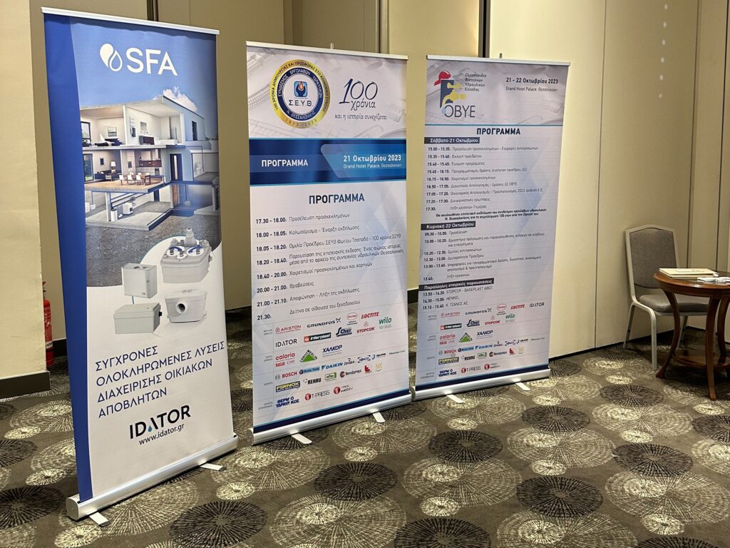 Για μία ακόμα χρονιά, συμμετείχαμε ως χορηγοί και εκθέτες στην Ετήσια Τακτική Γενική Συνέλευση της Ομοσπονδίας Βιοτεχνών Υδραυλικών Ελλάδας (ΟΒΥΕ), αλλά και τον εορτασμό των 100 χρόνων του Συνδέσμου Εργολάβων Θερμοϋδραυλικών Νομού Θεσσαλονίκης (Σ.Ε.Υ.Θ.) που πραγματοποιήθηκε στη στις 21-22 Οκτωβρίου, στο Grand Hotel Palace στη Θεσσαλονίκη. Η εκδήλωση περιλάμβανε ενδιαφέρουσες ομιλίες αλλά ήταν και μία σημαντική ευκαιρία δικτύωσης για τους επαγγελματίες του χώρου.