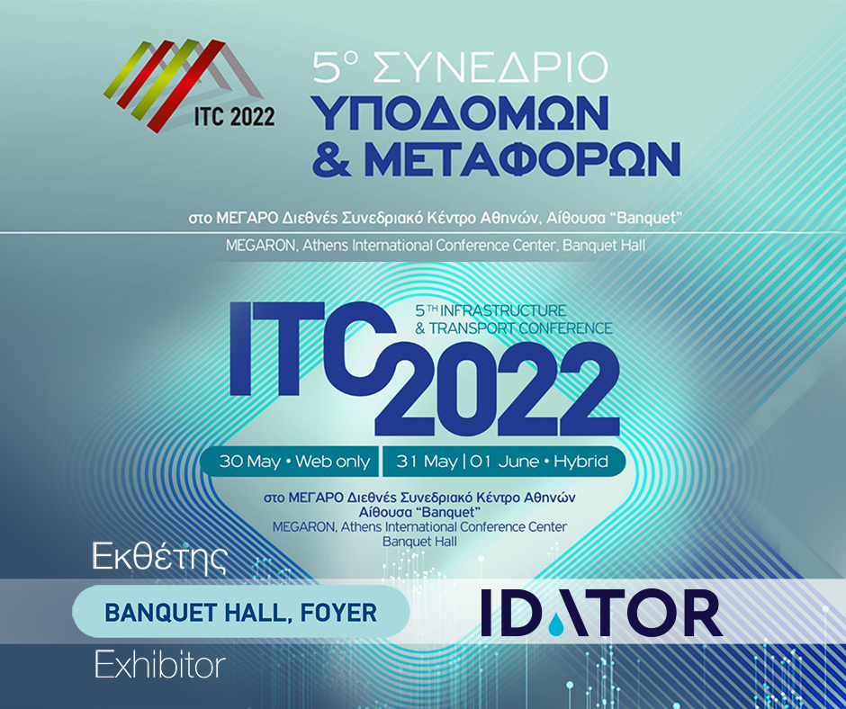 Η IDATOR συμμετέχει στο 5ο Συνέδριο Υποδομών και Μεταφορών – ITC 2022, που διοργανώνει το ypodomes.gr, στο Διεθνές Συνεδριακό κέντρο Αθηνών, αίθουσα “Βanquet” του Μεγάρου.