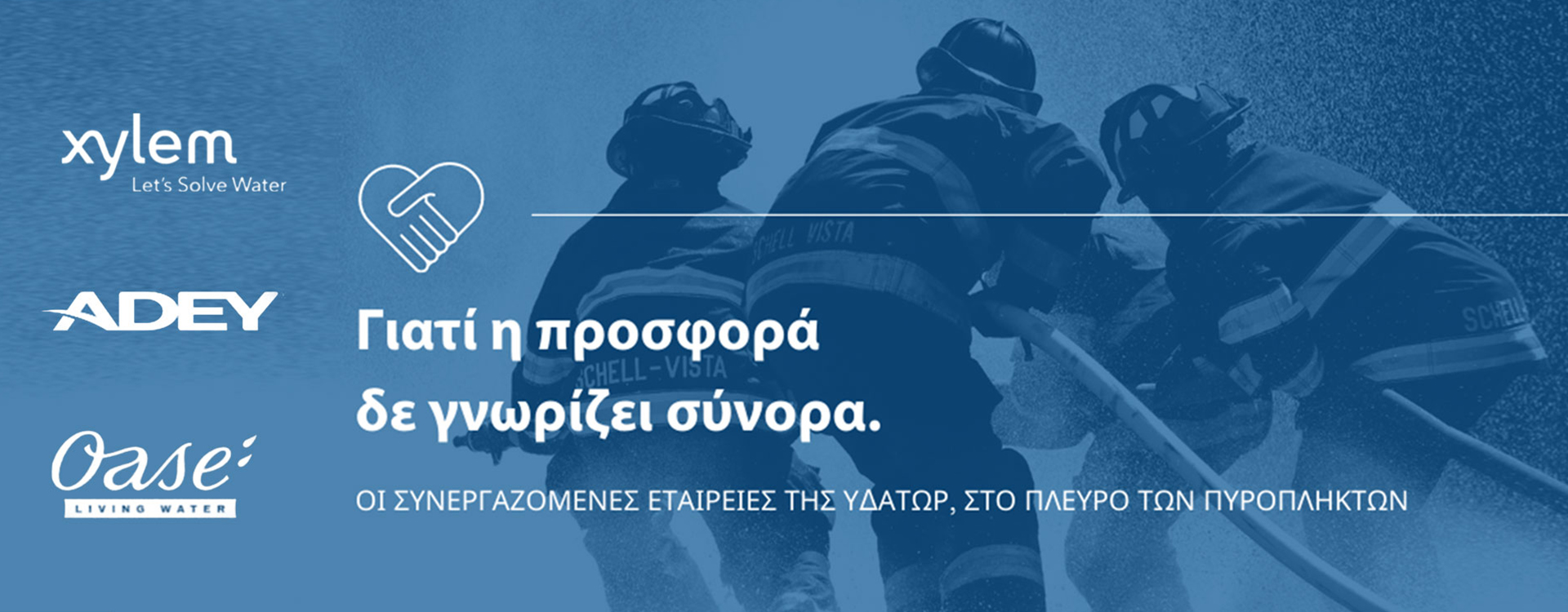 Οι συνεργαζόμενες εταιρείες της IDATOR, Xylem Inc., ADEY, OASE συμπαραστέκονται έμπρακτα στους πυρόπληκτους, προσφέροντας δωρεάν αντλίες και εξοπλισμό νερού σε όσους έχουν ανάγκη. Είμαστε ιδιαίτερα υπερήφανοι που διαθέτουμε συνεργάτες με υψηλό πνεύμα αλληλεγγύης και ανθρωπιάς. Σας ευχαριστούμε θερμά, εκ μέρους όλων των ανθρώπων που επλήγησαν από τις καταστροφικές πυρκαγιές!