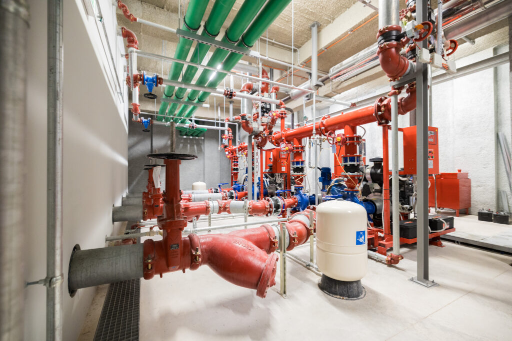 Καθώς το κτήριο ήταν υποψήφιο για πιστοποίηση κατά LEED, εγκαταστάθηκε ένα συγκρότημα άντλησης όμβριων υδάτων, αποτελούμενο από τέσσερις (4) αντλίες μεγάλης παροχής του γνωστού οίκου FLYGT, ελεγχόμενες από κεντρικό πίνακα ελέγχου με τους εξελιγμένους controllers FGC της FLYGT, με πιεζοηλεκτρικά αισθητήρια μέτρησης στάθμης και ψηφιακές οθόνες ΗΜΙ (Human Machine Interface) για την απεικόνιση των δεδομένων και ευκολία χειρισμού.