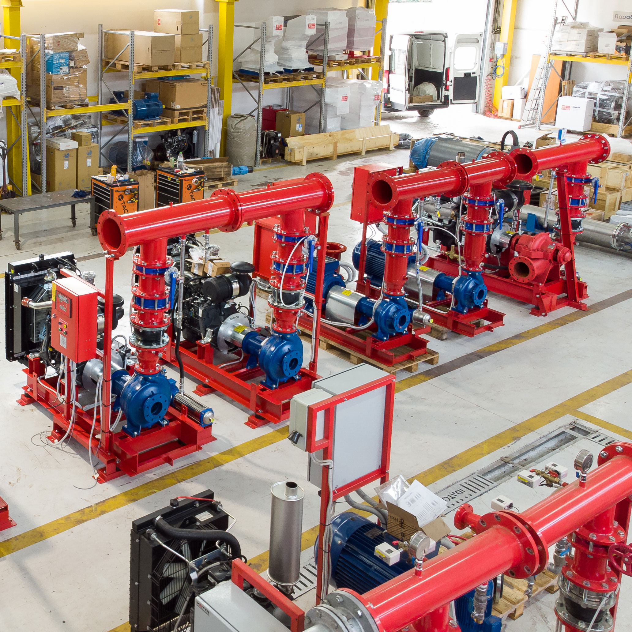 Η τυποποιημένη έκδοση αποτελείται από μία κύρια ηλεκτροκίνητη αντλία, εφεδρική πετρελαιοκίνητη και jockey.