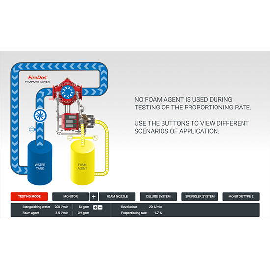 | Δοκιμή του Ποσοστού Αναλογίας χωρίς Πυροσβεστικό Αφρό ή Προ-μείγμα | Το αμιγώς μηχανικό σύστημα παρέχει μια οικονομικά αποδοτική και φιλική προς το περιβάλλον δοκιμή του ποσοστού αναλογίας, εντελώς χωρίς πυροσβεστικό αφρό. |